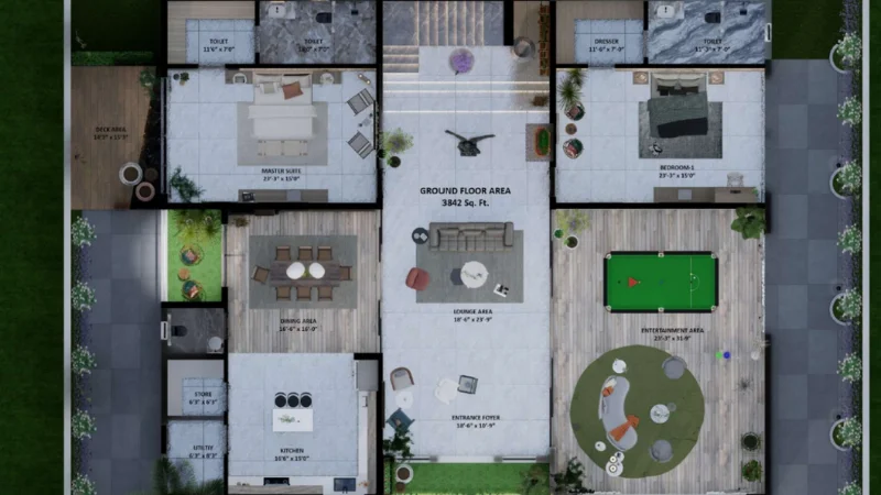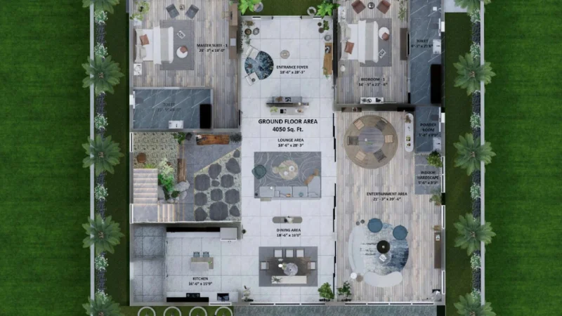 - 6000 sq.ft. private lawn with built-in bar counter